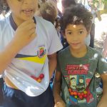 Ano passado a Arteris doou algumas mudas de plantas frutíferas para a escola, estamos cuidando, e ansiosos esperando as produzir, enquanto isso colhemos frutas das outras árvores que já temos na escola. As crianças estão colhendo acerola na maior festa.