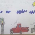 - Cada aluno representou com desenho o conteúdo discutido destacando algumas ações durante o trânsito.
