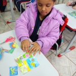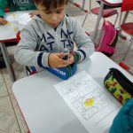 Durante a aula na disciplina de Ensino Religioso as professoras dos 1º anos conversaram com os alunos que devemos amar a natureza e preservarmos o nosso planeta valorizando cada ser que nele vive. Após a conversa dirigida e exploração do tema da aula as professoras distribuíram uma folha onde primeiramente os alunos pintaram, em seguida as professoras passaram papel contact. Os alunos recortaram e montaram o quebra cabeça do Meio Ambiente.