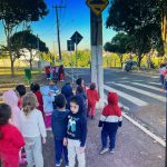 Objetivo: Trabalhar com as crianças a importância da conscientização de um trânsito seguro, realizando com as crianças um pequeno percurso próximo a escola, para que eles identificassem as sinalizações e as placas de trânsito.