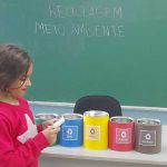 DESENVOLVIMENTO: Realizamos uma roda da conversa em que aprendemos sobre a importância da reciclagem, pois controla o uso dos recursos que tiramos do meio ambiente. Conhecemos os tipos de materiais que podem ser reciclados, bem como as cores das lixeiras destinadas a cada material. Ouvimos e cantamos em roda uma paródia explorando o tema (olha o lixo no chão). Finalizamos com uma dinâmica utilizando latas nas cores de cada material e figuras de diferentes tipos de lixo, cada criança teve a oportunidade de participar e aprender mais.