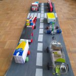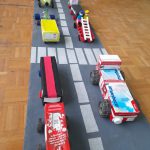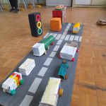 Na sala de aula os alunos montaram uma pista de transito para brincar. Onde aprenderam sobre as regras de transito e brincaram muito.