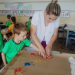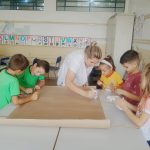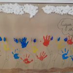 As crianças assistiram um vídeo explicativo sobre a importância da água e foi realizado uma roda de conversa com a professora, onde os alunos expuseram suas ideias de como cuidar da água, após foi realizado um cartaz coletivo sobre o dia da água onde mostra que as mãos das crianças são as flores e que elas precisam da água da chuva para sua sobrevivência.