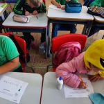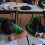 Depois realizaram atividades de fixação deste conteúdo, realizando a separação de alguns lixos e colorindo.