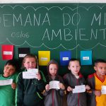 Primeiramente as crianças assistiram a alguns vídeos explicativos sobre o tema, onde foi abordado: o que é o meio ambiente, como podemos cuidar dele e a coleta seletiva.