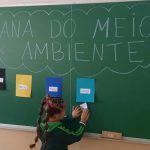 Para finalizar tivemos uma atividade lúdica em que cada criança recebeu uma foto de um material e teve que colocá-lo na lixeira correta, montamos no quadro as lixeiras de separação do lixo.