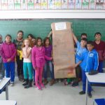 A professora Maribely juntamente com seus alunos da turma do 5º ano B confeccionaram um cartaz com o tema: Vamos fazer do trânsito um lugar melhor. Conversaram entre eles e representaram com ilustrações.