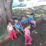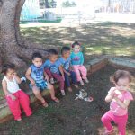 A professora passeou pelo parque da escola e juntamente com sua turminha plantou uma sementinha no parque incentivando as crianças a respeitar e cuidar da natureza.