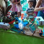 Umas das tarefas de casa era confeccionar jogos e brinquedos utilizando materiais recicláveis.