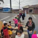 Passeata e conversa com as crianças sobre como atravessar a rua com segurança.