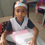 Antes de iniciar as atividades lúdicas foi feita uma roda de conversa com os alunos sobre a importância e o respeito que devemos ter com os povos indígenas. Após reflexão, foi realizado com os alunos uma atividade de arte onde os alunos escreveram em uma pena de papel uma palavra de valor e respeito com os índios. Com a pena confeccionada  foi feito um cocar dos valores e também alguns alunos pintaram o rosto e usaram um cocar confeccionado por eles.