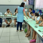 Psicóloga Gabriela, realizando o bingo do transito em sala de aula, reforçando a percepção, atenção e concentração