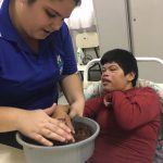 Já imaginou como seria se suas plantas pudessem “matar” a sede sozinhas, sem que você as regasse ou recebessem água da chuva? Como seria prático não é mesmo? Sem contar que não precisaria se preocupar no caso de fazer uma viagem mais longa por exemplo… Pensando nisso os alunos da sala Sócio Educacional II da Escola de Educação Especial Paulo Freire construíram no dia 19/09 um exemplo de vaso auto irrigável reciclável feito de garrafa Pet, onde os alunos puderam vivenciar a estimulação tátil através da terra e da semente de girassol, em seguida germinaram a mesma na garrafa juntamente com a terra com auxílio das professoras, que utilizando barbante ligado na água (base) e na terra através da tampa absorve a água e faz a irrigação da semente germinada, funcionando como uma espécie de raiz artificial garantindo que a terra fique úmida por dias ou algumas semanas, contribuindo para evitar situações como esquecer-se de regar ou para quem não possui muito tempo disponível para isso.