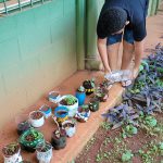 Foi pedido que eles personalizassem seus vasos como quisessem. Foi marcado um dia para que todos levassem uma mudinha de uma planta, fomos até o jardim da escola e cada um plantou a sua muda que foi cuidada todos os dias para se desenvolver e no final do mês todos puderam levar o seu vaso para casa. A atividade foi muito enriquecedora e atrativa para os alunos que gostaram muito de realizar a mesma.
