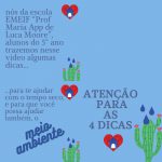 Os alunos dos quintos anos de escolaridade desenvolveram no mês de agosto um vídeo contendo dicas para tempos de seca. Dentro do projeto de “inovações tecnológicas” do período integral, os alunos: