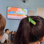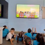 Como meio de introduzir e de esclarecer alguns pontos relacionados ao conteúdo TRÂNSITO, a professora pesquisou e apresentou aos alunos o vídeo de nome “Turminha de respeito – Noções de trânsito e transporte”, do canal Set Vídeo Produções; orientados a estarem confortáveis alguns deitaram e outros sentaram enquanto assistiam.