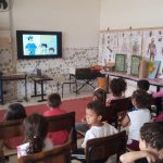 AS CRIANÇAS DO JARDIM I NA SALA DE VÍDEO VIRAM AS AÇÕES DE SEGURANÇA NO TRÂNSITO, OBSERVANDO VIAS, PLACAS, PESSOAS, LEIS, AGENTES DE TRÂNSITO, O MEIO AMBIENTE QUE NOS CERCA.