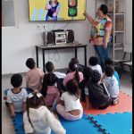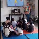 Hoje nossa aula começou na sala de vídeo, onde através de uma música pudemos observar o semáforo, suas cores e significados. Vimos a faixa de pedestres, quando devemos atravessar a rua e o símbolo da campanha Maio Amarelo, tudo muito produtivo.