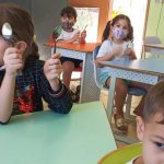 Posteriormente as crianças acompanharam a música com colheres para marcar o ritmo da mesma. Ao comando da professora: sinal vermelho, as crianças paravam de bater as colheres. Ao comando sinal verde, continuavam a bater as colheres.