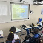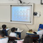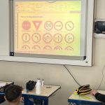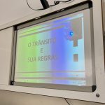 Os alunos assistiram três vídeos sobre o trânsito. Primeiramente visualizaram todas placas que existem no trânsito: os tipos e seus significados. Depois assistiram sobre “Dicas para ser um bom pedestre” e por fim um vídeo animado sobre uma história no trânsito. Eles discutiram sobre o que assistiram, falaram sobre o que já sabiam e o que aprenderam.