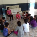 A aula teve inicio com a roda de conversa para se inteirarem do assunto em questão. Foi lido um texto informativo para que os alunos fizessem reflexão sobre o que causa a violência no trânsito.