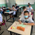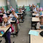 Após todo o projeto desenvolvido, os alunos ganharam as viseiras. Eles pintaram, recortaram e colaram e depois, usaram em sala e no momento da saída, no final das aulas, no intuito de incentivar a preservação do Meio Ambiente.
