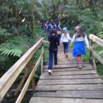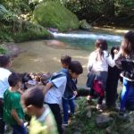 Durante a mini trilha estiveram em contato direto com a natureza; puderam observar um camaleão de perto e ver como se camufla diante do perigo; observaram árvores e folhagens de diferentes tamanhos e cores; pássaros, atravessaram pontes e o riacho.