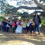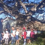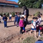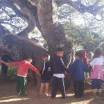 Finalizando, os alunos foram até a árvore de Jatobá e deram um abraço simbólico como manifestação de respeito ao ambiente.