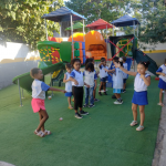 Iniciarei outra conversa questionando sobre o que falamos, se alguém conversou com a família, se a família tem cuidado do meio ambiente e como? Abrir espaço para perguntas e respostas e ir recapitulando a aula anterior. Contei a História o Livro do Planeta, seguida de interpretação oral e relembramos a importância de se evitar o desmatamento, o desperdício de alimentos, de produtos e de água, e incentivar a reciclagem e redução da produção de lixo. Realizei também a montagem do Quebra-cabeça do meio ambiente. Na sequência confeccionamos um cartaz coletivo com folhas e gravetos – onde a turma foi estimulada e orientada a passear pelo pátio da escola para catar folhas, gravetos e flores para montarem um lindo cartaz sobre o meio ambiente. Foi realizado com os alunos a Brincadeira – trilha do meio ambiente para cada aluno ir realizando o comando, após jogar o dado. Levei a turma ao pátio para conversarmos sobre questões relacionadas a preservação do meio ambiente e contei a História em Vídeo Azul e lindo: planeta terra, nossa casa. Após a história fiz a interpretação oral enfatizando a importância de cuidarmos do meio ambiente. Conversamos sobre a importância de se evitar o desmatamento, a poluição do ar e da água, bem como seu desperdício, incentivando a reciclagem, o cuidado com os animais, com as plantas e com o meio ambiente como um todo. Ainda com a turma no pátio plantamos uma árvore coletivamente e estimulamos o plantio de árvores como forma de melhorarmos a qualidade do nosso ar, produzirmos sombra e alimentos. Confeccionamos de um ioiô com jornal e lastex, como forma de estimular a reciclagem na hora da diversão e brincamos ao ar livre com o brinquedo produzido. Jogamos o jogo da memória com imagens relacionadas a reciclagem e o meio ambiente, como forma de estimular a socialização, a concentração e o reforço aos cuidados que devemos ter com o meio ambiente. Brincamos de Abre e Fecha com Tampinhas para os alunos pegarem uma tampinha por vez para tentar colocá-la na garrafa certa e para finalizar, brincamos de Passando a folha – os alunos foram organizados em círculo no chão e cada um recebeu um pregador, onde o aluno que estava com a folha presa no pregador, deveria passá-la para o colega com o pregador e sem ajudar com a outra mão, para dessa forma estarmos trabalhando o movimento de pinça e uma melhor socialização entre a turma, além da atenção e cooperação.