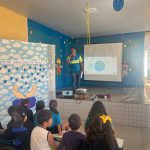 Foi realizada na semana de 22 de março (dia mundial da água) uma palestra sobre a água. Contamos com a participação e colaboração do técnico da Sabesp o Sr Alex, que trouxe slides, vídeos, animação sobre o tratamento da água e importância de economizar água e descartar o lixo corretamente. Ele também ouviu as crianças e respondeu suas perguntas, foi uma participação muito significativa para os alunos.