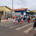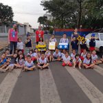 No dia 08/08 é comemorado o Dia do Pedestre. A partir disso, foi realizada uma roda de conversa com as crianças para levantamento dos conhecimentos prévios sobre o tema. Em seguida, foi complementado o conceito do pedestre e a sinalização de trânsito correspondente. Logo após, foi realizada a vivência na rua em frente ao CEI, foram utilizadas placas de trânsito, algumas crianças foram caracterizadas de guardas municipais, outras representaram os motoristas com carrinhos confeccionados com materiais recicláveis e outras representaram os pedestres. Com essa proposta, o objetivo foi conscientizar as crianças, e consequentemente as famílias, sobre a importância da utilização da faixa de pedestre, garantindo a segurança do pedestre durante a travessia das ruas. Várias crianças relataram situações vividas com a família relacionadas ao uso da faixa de pedestre. Foi possível notar que as crianças compreenderam a importância do uso da faixa de pedestres.