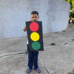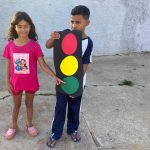 Durante a atividade, conversamos sobre a função das cores do semáforo, a importância de respeitar as regras de trânsito e a segurança dos pedestres, reforçando o papel de cada um na construção de um trânsito mais seguro.