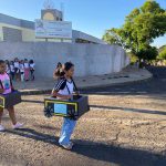 Os alunos foram até a rua da escola para observar, de forma prática e lúdica, como funciona o trânsito. No local, foi montado um semáforo de EVA representando as luzes vermelha, amarela e verde. As crianças também observaram a passagem de pedestres e de carros confeccionados com sucata, simulando situações do dia a dia. Um dos alunos representou o guarda de trânsito, orientando o grupo sobre o momento certo de atravessar e a importância de respeitar as sinalizações.