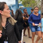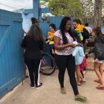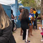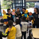 Os responsáveis foram recepcionados na saída dos 1º e 2º turnos pelos professores integradores caracterizados de personagens do Projeto escola ( Zé Quest e sus turminha pé na estrada), conversaram e entregaram folder com informações sobre o trânsito.