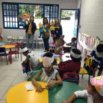 A atividade foi desenvolvida no 1º e 2º turnos, os professores integradores visitaram todas as turmas caracterizados dos personagens Zé Quest e sua turminha.