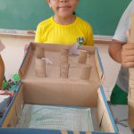 Pediu para os alunos, juntamente com seus familiares construir uma maquete, utilizando materiais recicláveis.