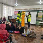 Durante a apresentação, foram usados recursos visuais, exemplos práticos e linguagem adequada á faixa etária dos alunos. os alunos demonstrarem interesse, fazendo perguntas e relatando suas vivências no cotidiano e em seguida exibimos os vídeos educacionais voltados a humanização do trânsito: Jogos das Batidas ( a diferença entre grande e pequeno, o risco de usar o celular ao dirigir) e O passeio de Bicicleta (a importância do uso de equipamentos de segurança e a segurança de ciclistas e de pedestres). Ao final da palestra, recebemos a visita do pessoal da ambulância – APH e levamos as crianças para conhecer de perto a ambulância por dentro e o enfermeiro Lucas, fez uma breve reforçada dando orientações de prevenção de acidentes. Finalizamos com a entrega de um kit com lápis recicláveis, pirulito ou bombom e revistinhas em quadrinhos Zé Quest.